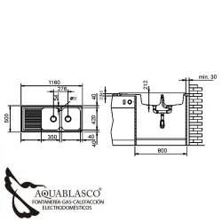 Fregadero 2 Cubetas 1 Escurridor 1160 x 500 Zentia